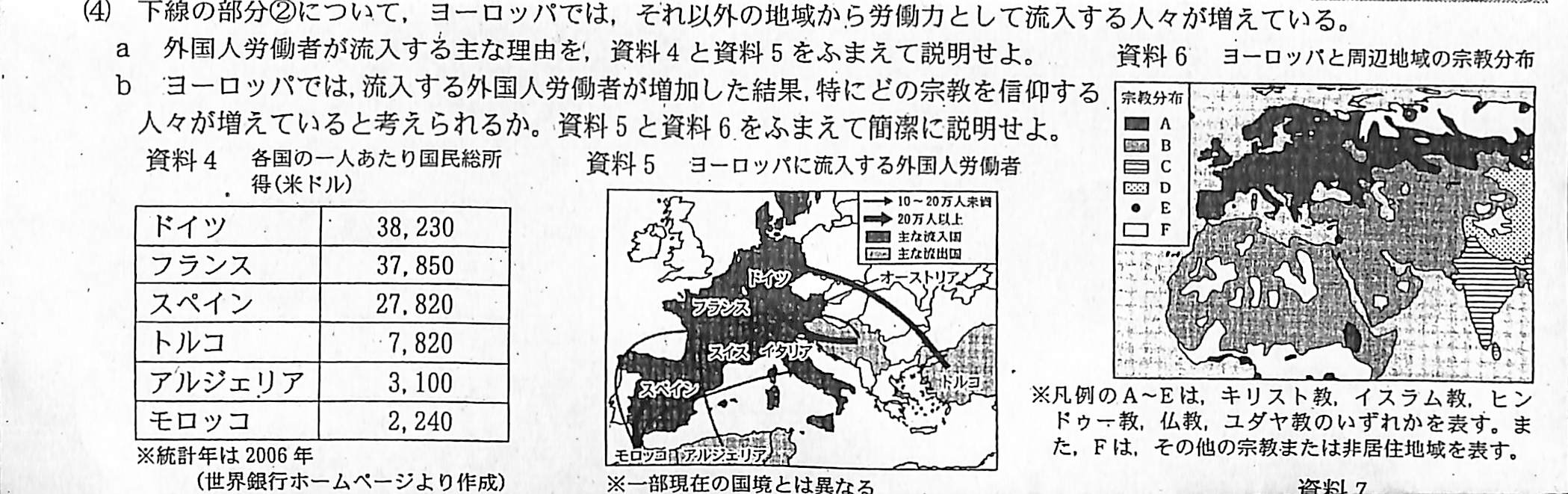 答え(4)a 一人あたりの国民総所得の低い国の労働者が、より高い所得を求めてくるから。
